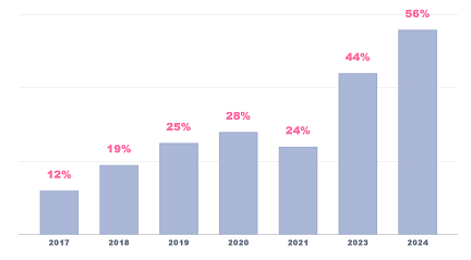 КУЛЬТУРА ПОТРЕБЛЕНИЯ СРЕДИ ЦА (Ж 16-34)* 16-19 лет, рост на 317% с 7% до 29% 20-24 лет, рост на 91% с 14% до 26% 25-34 лет, рост на 24% с 26% до 32% *анализ данных: Mediascope, BrandPulse, Россия, 2017-24 г.